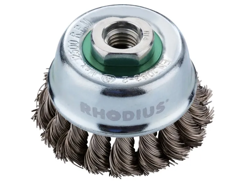 Rhodius ETBZ, kopbørste 65 x 20 x M14, zoomet, Topline, Made in Germany, til rustfrit stål, stål Maskinegnethed: Den tekniske børste ETBZ er beregnet til anvendelse på vinkelslibere med M14 optagelse. Vær opmærksom på arbejdsomdrejningstallet og sikkerhedsomdrejningshastigheden. Hvert produkt er mærket med en maksimal sikkerhedshastighed. Den er afgørende for din sikkerhed på arbejdspladsen og må under ingen omstændigheder overskrides. En tilpasning til den maksimalt tilladte arbejdshastighed muliggør anvendelse af maskiner med omdrejningstal. Desuden må håndstyrede maskiner kun udstyres med børster med en udvendig diameter på max. 180 mm! Materialeegnethed: Denne børste er specielt udviklet til bearbejdning af rustfrit stål (VA-stål, Inox), for eksempel 1.4301 (X5CrNi18-10 eller 304) samt stål (byggestål også sort stål, ST37, S235JR, 1.0037 eller karbonstål) og støbt stål opnår her optimale resultater. Konstruktion og fremstilling: Der anvendes garn af høj kvalitet, som er forarbejdet ved ETBZ. Børsten har en ret begrænset fleksibilitet, men egner sig især godt til svejsearbejde og fjernelse af stærke stivelser. Kvalitet: Brugeren får med ETBZ det bedste Rhodius-værktøj i sin kategori. Rhodius Topline produkter giver en høj grad af ydeevne og kvalitet. Anvendelse: Monteringsbørster egner sig især til effektiv behandling af store flader, svejsesømme og metalplader. Her anvendes de især til rengøring, afgratning, keslagning og rustfjernelse. Denne Rhodius kopbørste til rustfrit stål egner sig optimalt til bearbejdning af rust- og syrebestandige ståler, meget faste eller legeret stål, bygge-stål, værktøjestål, hærdede stål og meget stærke plader. Mål: ETBZ's trådtykkelse er 0,50 mm. Denne kopbørste fås med en diameter på 65 mm. Brancher: Det er det perfekte værktøj til de mange anvendelser og udfordringer inden for bilværkstedet og inden for låse, i anlægskonstruktion, i containerbyggeri, kedel- og beholderbygning, i konstruktionsstålbyggeri, i rørledningsbyggeri og også på montering. Bemærk: Børstens diameter, længden på det pågældende urenheder samt belægningsgraden er afgørende faktorer for de bedste resultater ved overfladebearbejdning. Jo længere trådlængden er, desto blødere og mere fleksibel er børsten. Dermed egner børsterne sig fremragende til bearbejdning af strukturerede emner og til en skånsom overfladebearbejdning. Jo kortere børstens trådlængde er, desto mere aggressiv kan man arbejde med børsten. For at opnå en så effektiv overfladebehandling som muligt skal du i bedste fald vælge den maksimale børstediameter, der kan monteres på det pågældende drevapparat. En høj sættetæthed er ikke kun grundlaget for en optimal ydelse, men også for en lang levetid på børsten. Lavere belægningsgrader øger til gengæld trådens fleksibilitet, og profilerede overflader kan bearbejdes bedre.