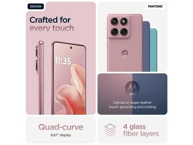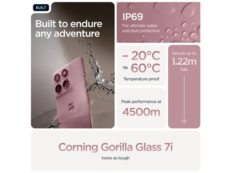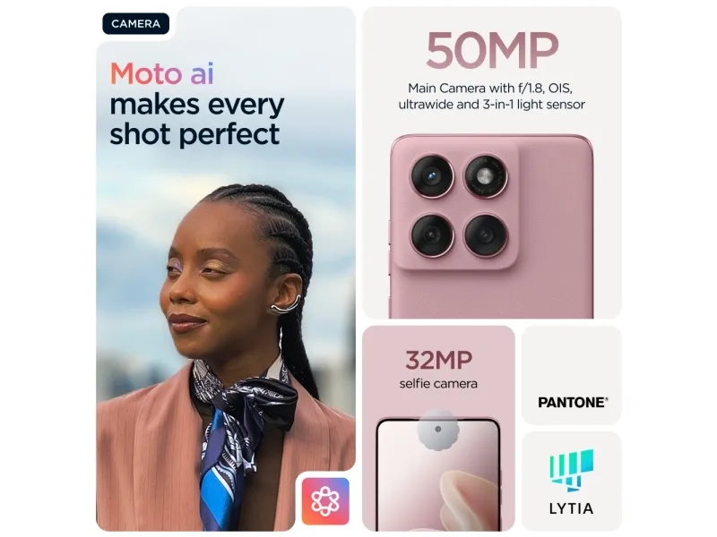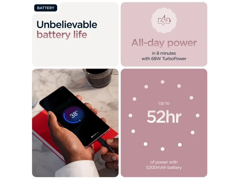 Ta bilder med det tredoble bakre kamerasystemet med en hovedsensor på 50 megapiksler, et ultravidvinkelobjektiv på 13 megapiksler og et makrokamera. Blokker uønskede forstyrrelser med optisk bildestabilisator, og dra nytte av ulike moduser som Night Vision og Panorama for bedre fotografering. Et frontkamera på 32 megapiksler støtter automatisk smilopptak for levende selfies. Hold deg tilkoblet med robuste 5G-funksjoner, og nyt hurtiglading med TurboPower-teknologi drevet av et 5200 mAh-batteri med lang levetid. Smarttelefonen er designet for å være holdbar og oppfyller IP68- og IP69-standardene for vann- og støvbestandighet, noe som gjør den egnet for daglig bruk.