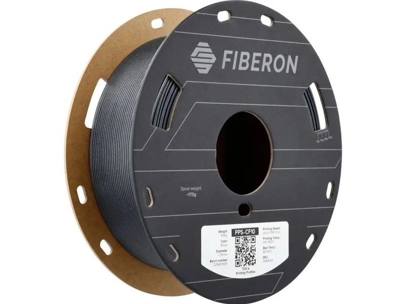 Polymaker Fiberon™ PPS-CF10 - forbedret styrke og stabilitet ved hjælp af kulfiber og warp-free-teknologi Fiberon™ PPS-CF10 er et polyphenylensulfid, der har en minimal deformering med mekanisk styrke. Det er utroligt stærkt med en stivhed, der svarer til metal.