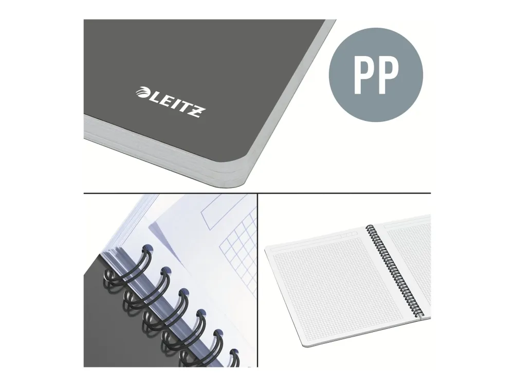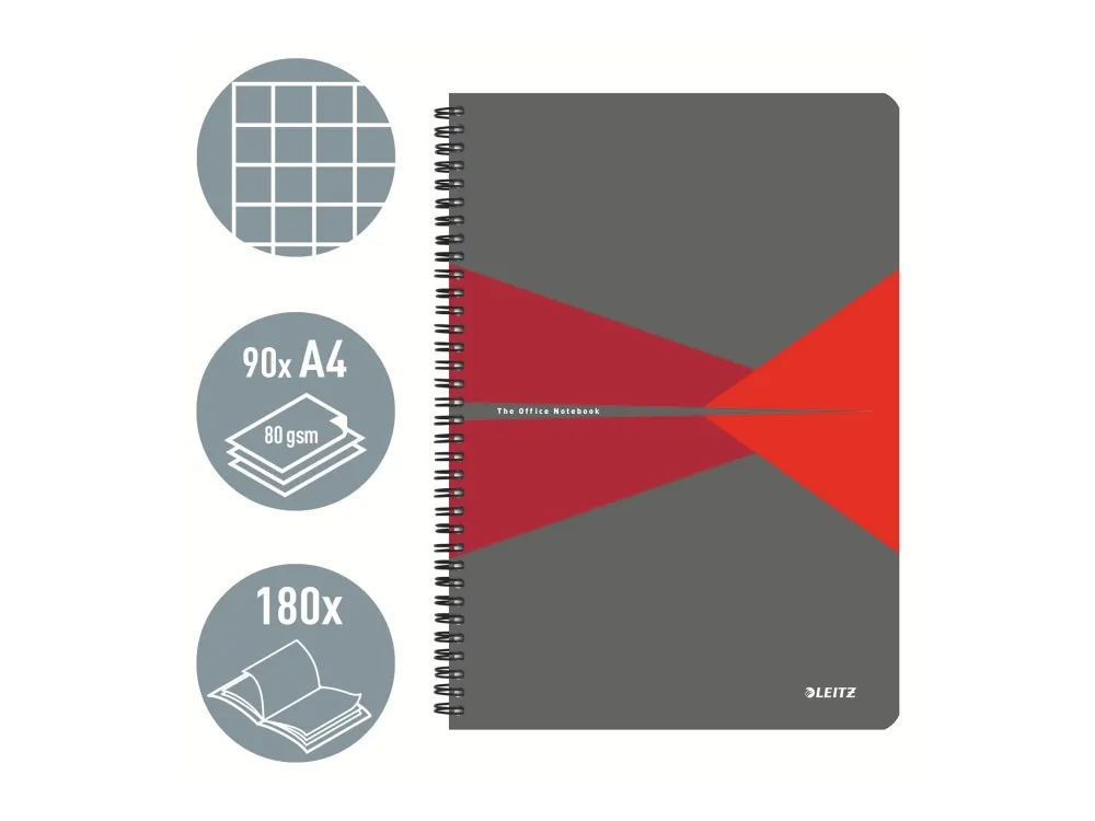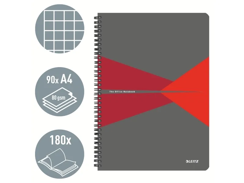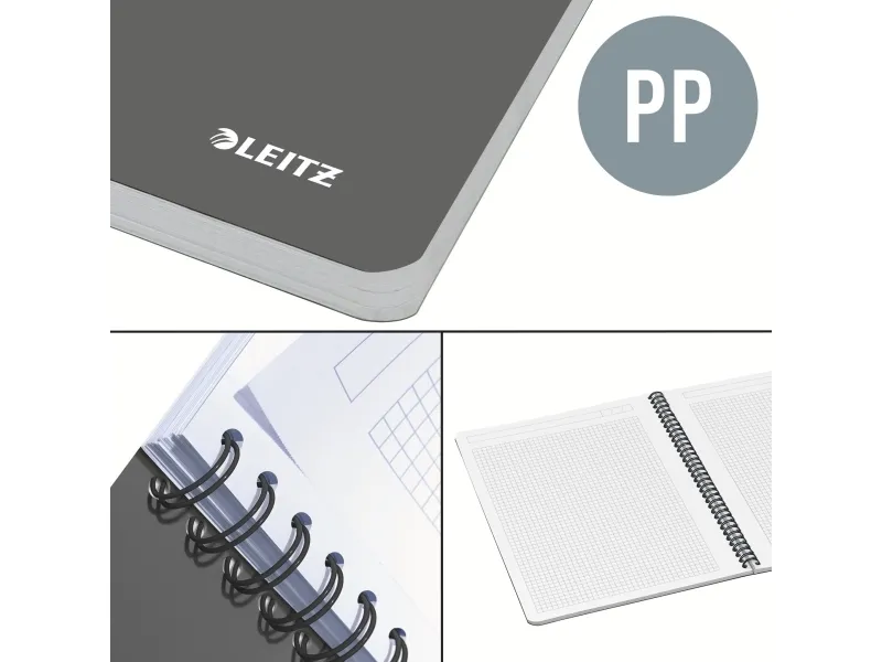 The Leitz Office A4 Notebook is designed for those who value both functionality and style in writing materials. With a side-bound format and wire-bound design, this notebook allows for easy handling and smooth page turning. The 360° opening feature ensures that every page can lay flat, making it ideal for note-taking, sketching, or journaling. It includes 90 sheets, totaling 180 pages, all made from 80 g/m² paper that provides a great writing experience. Additionally, the microperforation allows for neat and easy tearing when necessary. The cover is crafted from durable polypropylene (PP), making it flexible yet protective against wear and tear, while the opaque surface ensures a professional appearance. A squared ruling type caters to precise writing and sketching, perfect for students, professionals, and hobbyists alike. Enjoy a smudge-resistant experience with this FSC certified notebook that meets functional needs and aligns with environmentally conscious standards.
