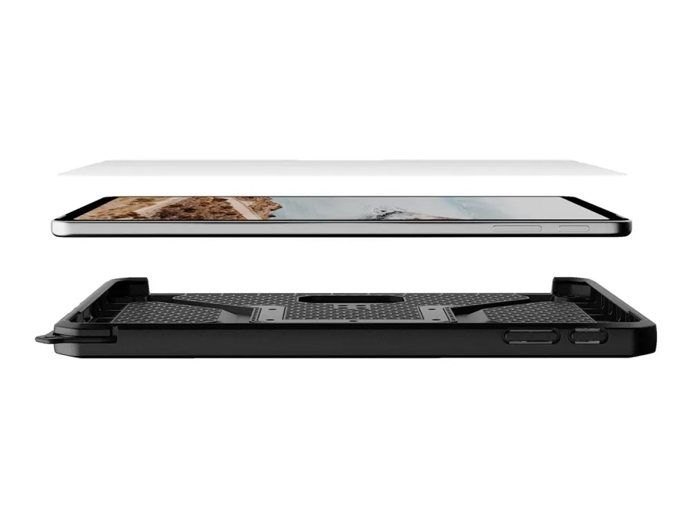Protect the tablet screen with this double-strengthened tempered-glass screen protector from Urban Armor Gear. It offers essential drop, scratch, and fingerprint protection to keep your device safe from wear and tear. The oleophobic and anti-fingerprint coatings ensure a clear view and easy maintenance, providing a seamless user experience. Each package includes an application kit and a cleaning kit to assist with installation.