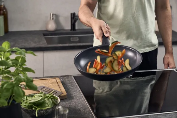 Særligt velegnet til skånsom, fedtfattig stegning af fisk, grøntsager og retter med æg;