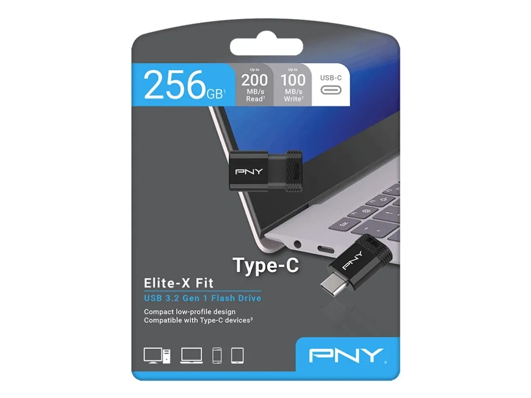 The PNY Elite-X Fit USB flash drive is an essential tool for anyone needing reliable data storage. With a substantial capacity of 256 GB, this device is perfect for storing documents, photos, and videos. It offers fast data transfer speeds with a read rate of 200 MB/s and a write rate of 100 MB/s, ensuring efficient access to files. Designed for convenience, this flash drive features a sliding collar to protect the USB connector, reducing the risk of damage while not in use. The key ring loop adds portability, allowing it to be easily attached to keychains or bags for access on the go. Operating in a temperature range from 0°C to 70°C, the PNY Elite-X Fit is built to withstand everyday use. Its USB-C 3.2 Gen 1 interface provides compatibility with a wide array of devices, making it a versatile addition to anyone’s tech collection. Whether for personal or professional use, this USB flash drive is an effective solution for storage needs.