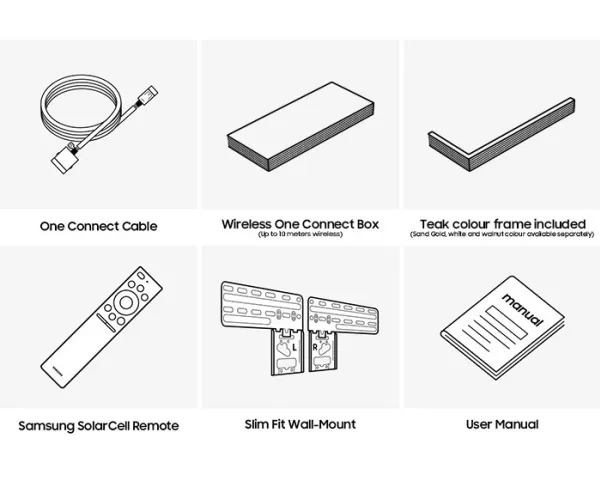 Smart-kalibrering, One Connect Box, Embeded POP, Wireless TV On, Customizable Frame, Motion Detection, støtte for Apple AirPlay, FreeSync Premium Pro, Super Ultra Wide Game View, Mini Map Zoom, støtte for SlimFit Cam, Light-Sync, Samsung Daily+, Generativ tapet, Karaoke Mikrofon, Samsung Vision AI, Wireless One Connect, 7 år med Tizen OS oppgraderinger