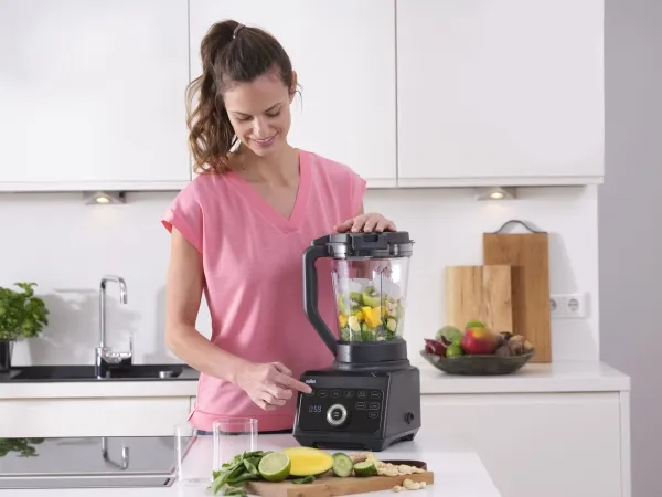 Oppdag Braun PowerBlend 9, designet for deg som setter pris på funksjonalitet og stil når det gjelder kjøkkenmaskiner. Denne blenderen er utstyrt med en robust motor på 1,6 kW som kan nå hastigheter på opptil 45 000 o/min, slik at ingrediensene dine blir perfekt blandet. Enten du skal knuse is til smoothies, tilberede varme supper eller lage frosne desserter, har PowerBlend 9 10 hastighetsinnstillinger og en ekstra pulsfunksjon. Tritan-kannen er slitesterk og BPA-fri, noe som sikrer at kreasjonene dine er trygge for hele familien. Med avtakbare deler som tåler oppvaskmaskin, er det enkelt å rydde opp. Braun PowerBlend 9 er et uunnværlig verktøy for ethvert moderne kjøkken.