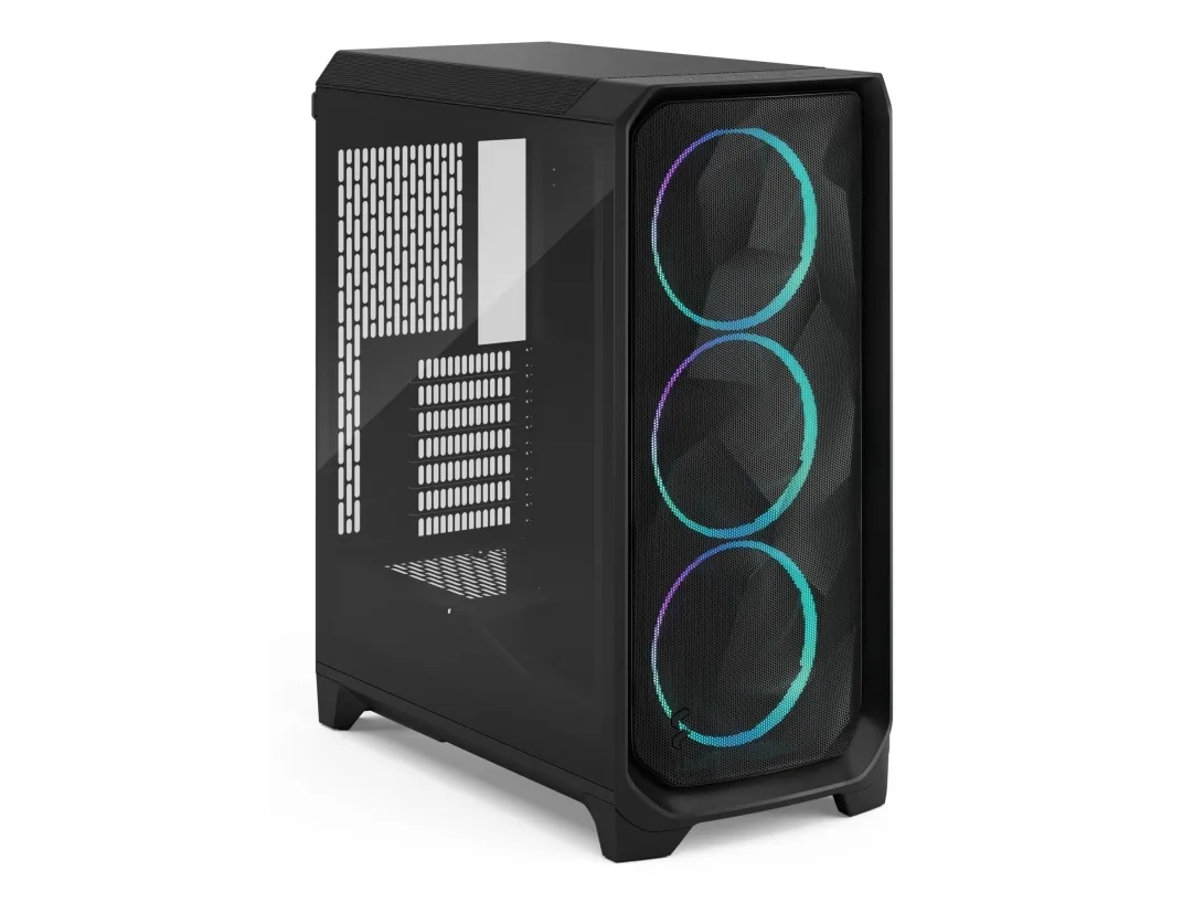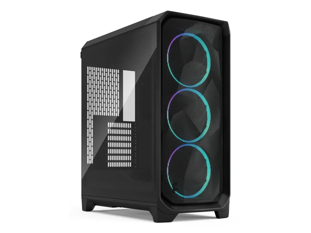 The Fractal Design Meshify 3 RGB offers a versatile tower chassis that supports effective cooling configurations to meet various gaming and computing needs. Capable of housing up to a 360 mm radiator in the front panel and a 280 mm radiator at the top, this case ensures efficient thermal management. With an adjustable internal layout featuring six internal bays, it accommodates numerous storage options and offers a spacious 34.5 mm cable routing space, promoting an organized setup. Equipped with tool-less side panels and cable guides, setup and maintenance become effortless, allowing for a cleaner look and better airflow. Featuring a stylish tempered-glass design combined with durable industrial-grade steel, the Meshify 3 RGB provides robust protection for your components while showcasing them beautifully. The case supports a variety of motherboard sizes, from mini-ATX to extended ATX, making it suitable for a range of builds. Additionally, with generous expansion slots and front panel connectivity options like USB-C 3.2 Gen 2x2, this chassis delivers functionality and convenience for modern users.