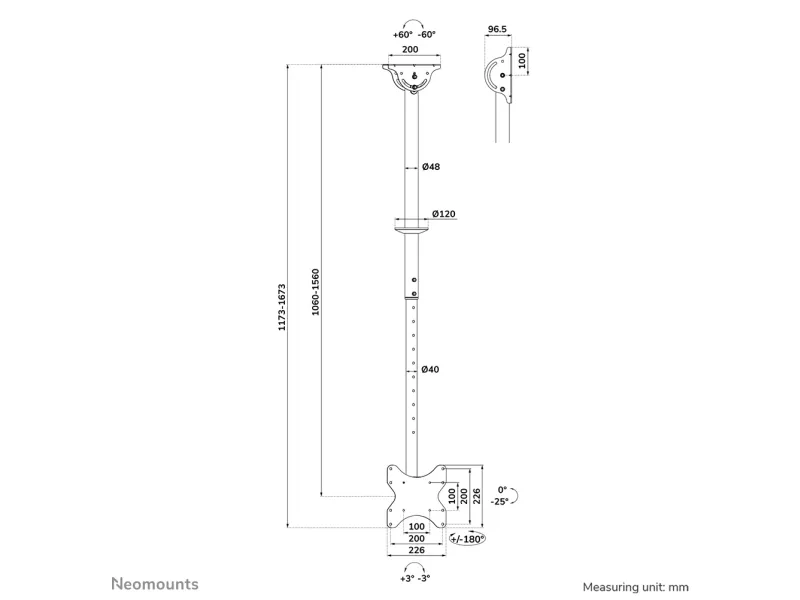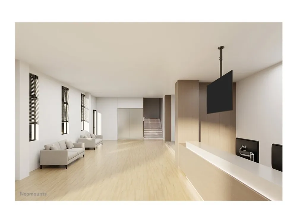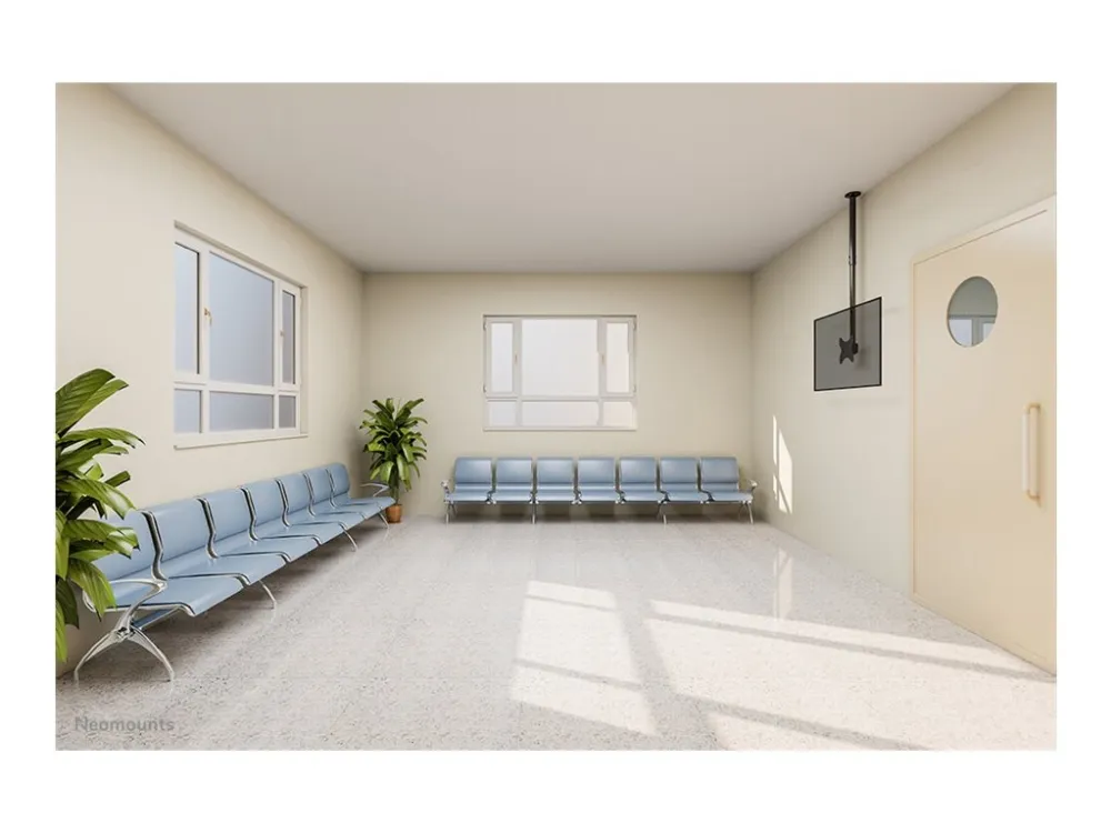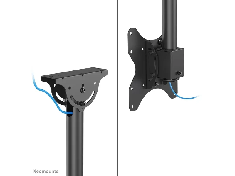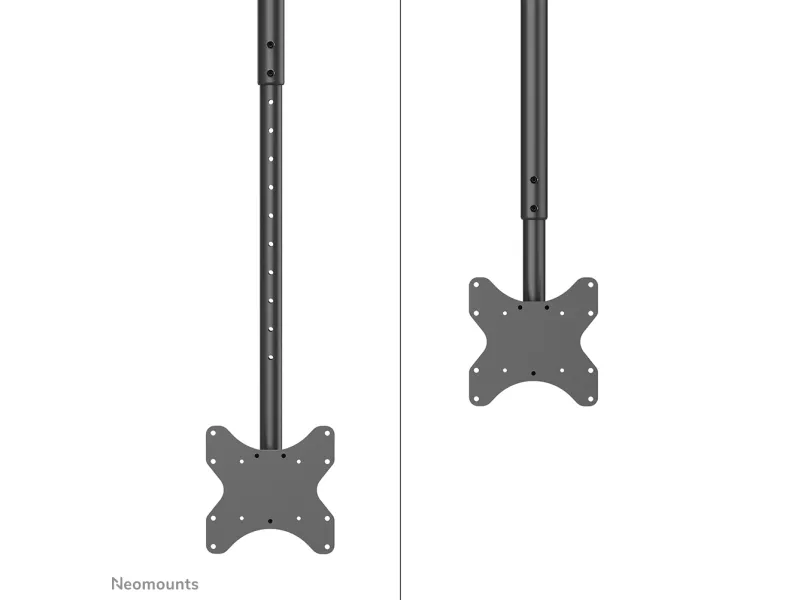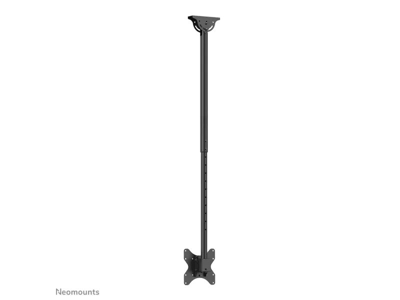 The Neomounts CL35-340BL12 is a versatile full-motion mounting kit designed to elevate flat panel displays ranging from 23 to 42 inches. Crafted from durable steel, this ceiling mount offers flexibility with a height adjustment of up to 50 cm, allowing users to customize the viewing experience. Integrated cable management ensures a neat and organized setup, enhancing the overall aesthetic of any space. This mounting kit features a tilt range of -25° to 0°, a swivel range of -180° to 180°, and slight rotation adjustments of -3° to 3°. These capabilities enable optimal positioning for glare reduction and improved viewing angles. The CL35-340BL12 provides a load capacity of up to 50 kg, making it suitable for various applications, from home theaters to offices, delivering flexibility and strength in one reliable product.