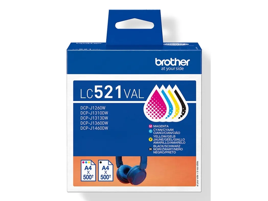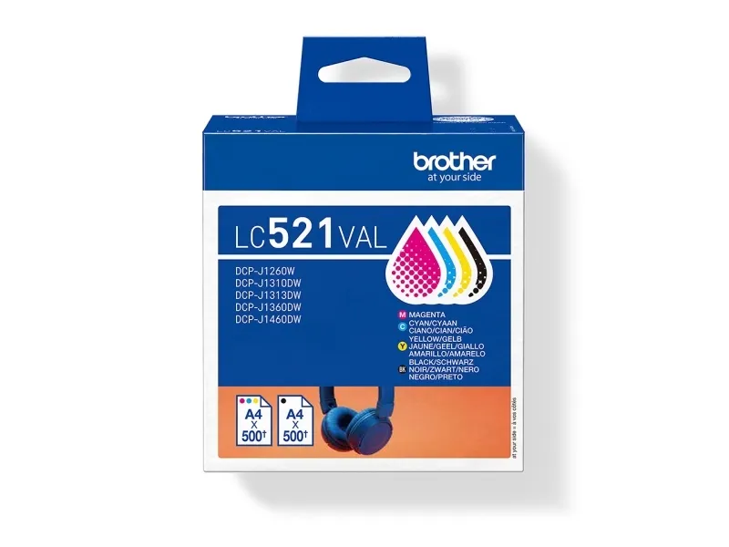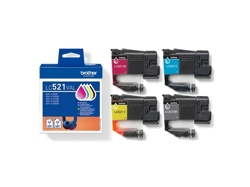Brother LC521VAL, Sort, Blå, Magenta, Gul, 4 stk, 500 Sider, 500 Sider, Multipakke