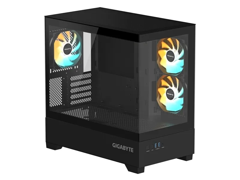 GIGABYTE PC cases combine innovation, durability, and sleek design to enhance any build. Designed for optimal airflow, efficient cable management, and expandability, they cater to gamers, creators, and professionals. With high-quality materials, customizable RGB lighting, and modern aesthetics, GIGABYTE cases ensure performance, style, and reliability for any setup.GIGABYTE C201 PANORAMIC PC Case - Mid Tower, m-ATX, 360mm radiator support, 3 Pre-installed Fans, USB 3.0, Support RGB Fusion. Form factor: Midi Tower, Type: PC, Product colour: Black. Power supply location: Bottom, Supported power supply form factors: ATX. Side fans installed: 2x 120 mm, Side fans diameters supported: 120 mm, Rear fans installed: 1x 120 mm. Supported HDD sizes: 2.5,3.5". Width: 242 mm, Depth: 430 mm, Height: 431 mm