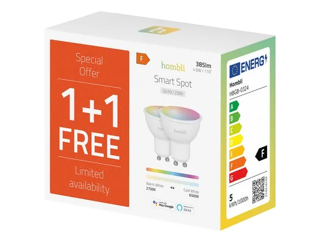 Hombli HBPP-0119, Smartpære, Hvit, GU10, Multi, 2700 K, 6500 K