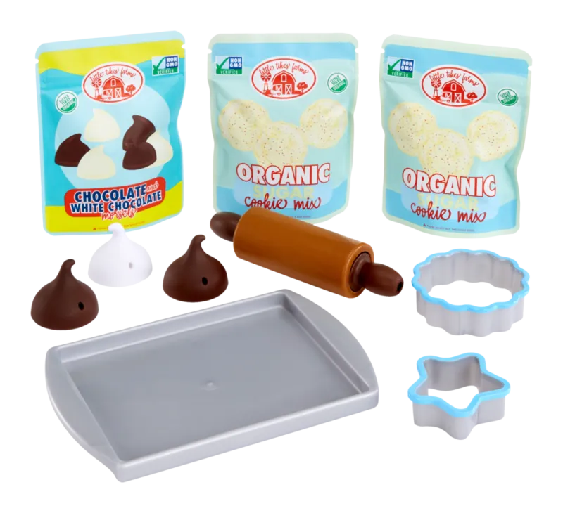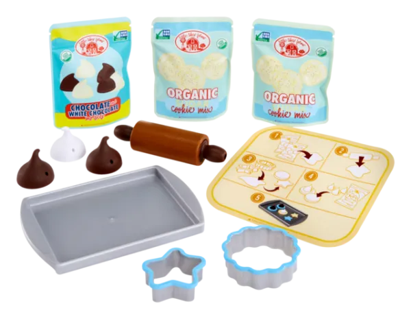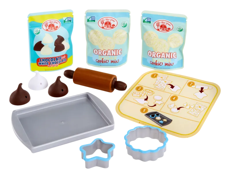 Creative Chefs Cookie Kit gir barn muligheten til å være kreative gjennom praktisk læring og fantasi! Dette kakesettet inneholder hyperdetaljert lekemat og kjøkkenutstyr for den lille bakeren. Barn kan blande, kjevle ut og skjære ut Make-It! Mix-kjeks ved hjelp av en funksjonell bakeplate, kjevle og kakeutstikkere. Samle hele Creative Chefs-serien for den ultimate kreative kjøkkenopplevelsen! Fra 3 år. Inkluderer: - 1 bakeplate - 1 kjevle - 2 kakeutstikkere - 2 poser med Make-It! Mix til kjeks - 1 pose sjokoladebiter - Oppskriftskort med visuelle instruksjoner