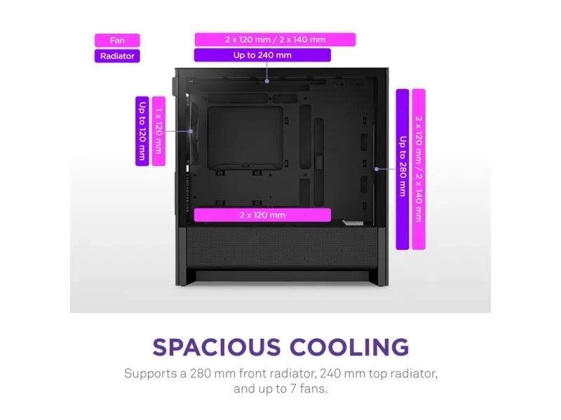 NZXT - - sidepanel med vindu - ingen strømforsyning - USB/lyd