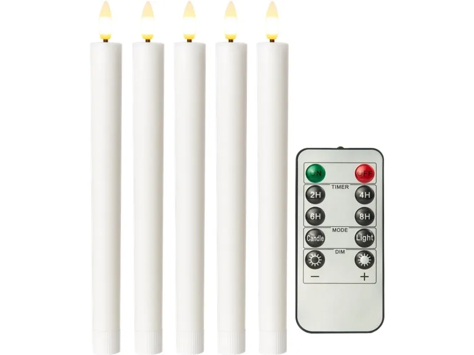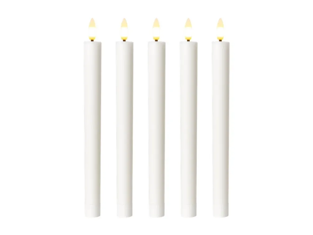 Traditionelle stearinlys for varmt lys med naturlig, flimrende flamme – fuldstændig elektrisk og fuldstændig sikker