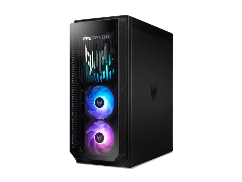 The Acer Predator Orion 7000 PO7-660 offers powerful gaming performance, equipped with a Core Ultra 9 processor featuring 24 cores and a clock speed reaching 5.7 GHz. With a substantial 36 MB L3 cache and 2.048 TB SSD storage using PCI Express 4.0, this tower computer ensures fast data access and ample space for games and applications. The combination of DDR5 RAM with RGB lighting adds a modern aesthetic while enhancing performance. Connectivity options include multiple USB ports, HDMI, DisplayPort, and Thunderbolt 4, supporting an extensive range of peripherals for any gaming setup. The system is also compatible with advanced wireless protocols including Wi-Fi 6 and Wi-Fi 7, facilitated by the Killer E3100G Ethernet controller for stable online gaming. With a robust 1200 watts power supply boasting 89% efficiency, the Acer Predator Orion 7000 is designed to deliver sustained performance for an immersive gaming experience.