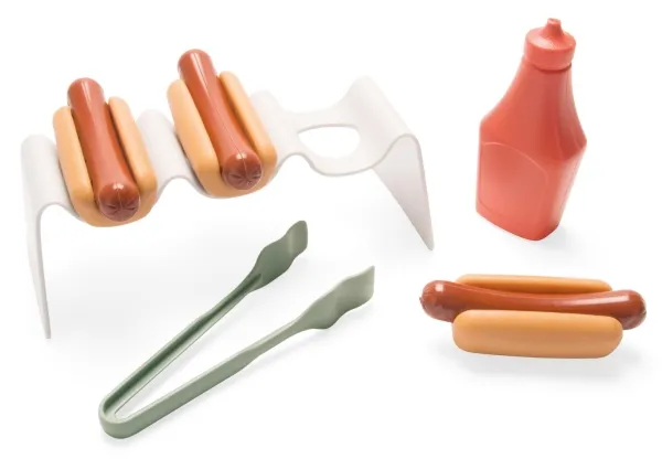 Green Gardens hotdogsæt i 9 dele er det perfekte legetøj til små madkunstnere, der elsker at lege restaurant eller pølsevogn. Dette Svanemærkede legesæt kombinerer sjov rolleleg med miljøvenligt design og giver børn mulighed for at udfolde deres kulinariske kreativitet. Sættet indeholder alt, hvad der skal bruges til at servere de lækreste legemad-hotdogs: pølser, brød, ketchupflaske og tang i holdbare materialer og flotte farver. Den praktiske brødholder og dispenser gør det nemt for små hænder at sammensætte deres egen hotdog-kreation, hvilket styrker både finmotorik og øje-hånd-koordination. Dette legesæt er ideelt til at stimulere fantasifuld rolleleg, hvor børn kan være alt fra pølsemand til restaurantejer. Det inviterer til social interaktion, hvor både børn og voksne kan deltage i legen, hvilket fremmer sprogudvikling og sociale kompetencer. Gennem leg med hotdogsættet udvikler børn deres selvtillid og kreative evner, mens de lærer om hverdagssituationer på en sjov og engagerende måde. Kvalitet og sikkerhed er i højsædet med dette Svanemærkede legetøj, som er fremstillet under hensyn til både miljø og sundhed og kan sagtens bruges både inde og ude. Den robuste konstruktion sikrer lang holdbarhed, og den praktiske rengøring i opvaskemaskinen gør det nemt at holde legetøjet hygiejnisk og klar til næste legs eventyr. Det er perfekt til at supplere andre køkken- og havelegetøj fra Green Garden-serien og kan bruges året rundt til endeløse timer af kreativ og udviklende leg. Sikkerhedsinstruktioner