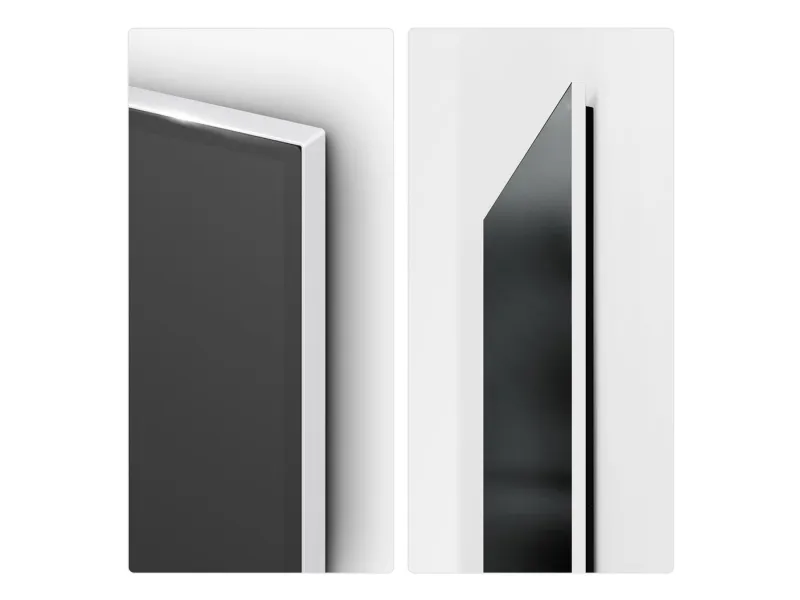 Panel uten stativ - 122.2 cm x 2.72 cm x 70.3 cm x 16.8 kg Panel med stativ (høyeste posisjon) - 122.2 cm x 26.3 cm x 78.7 cm x 22.1 kg Panel med stativ (laveste posisjon) - 122.2 cm x 26.3 cm x 74.2 cm x 22.1 kg Stativ - 48.5 cm x 26.3 cm
