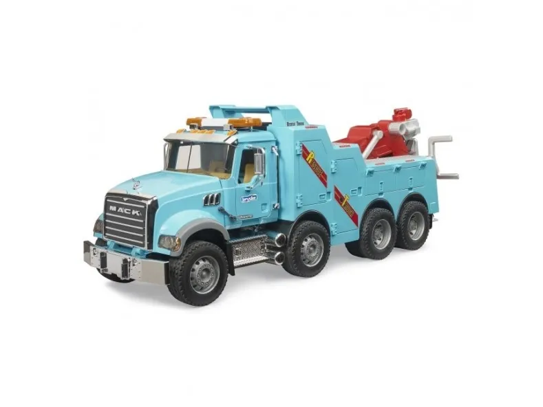 The MACK’s detailed cab has doors that can be opened and a hinged bonnet. To complement this versatile truck, the new state-of-the-art light & sound module for trucks is already installed. The RAM Service Truck (item no. 02509) and the Mercedes Benz Sprinter Car Transporter (item no. 02675) from the wide range of BRUDER products supplement this new highlight in the BRUDER range.BRUDER MACK Granite Recovery and Towing Truck. Product type: Crane truck, Recommended age (min): 4 yr(s), Material: Acrylonitrile butadiene styrene (ABS), Product colour: Black, Cyan, Red, Silver