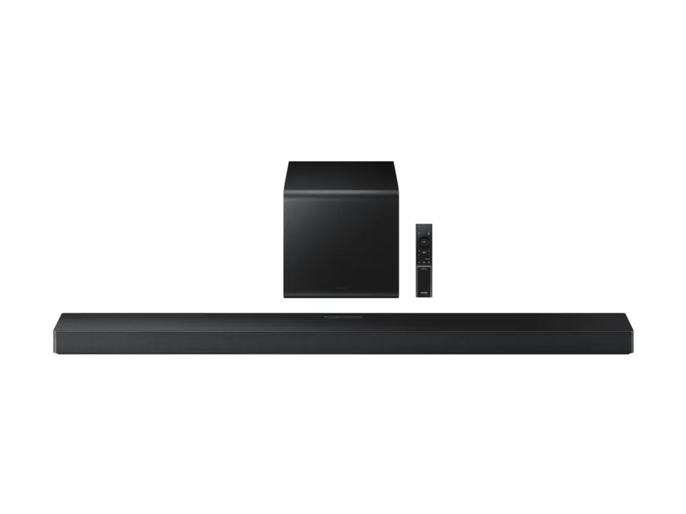 The Samsung HW-QS700F is a sound bar system designed for an immersive home theater experience. With a 3.1.2-channel configuration, it combines a powerful subwoofer and a passive radiator to deliver deep bass and clear vocals. The system supports multiple audio formats such as WAV, MP3, FLAC, and AAC, ensuring compatibility with various media. Connectivity is versatile with options like HDMI-eARC, optical digital audio input, USB, Bluetooth 5.3, and Wi-Fi, allowing seamless integration with other devices. Enhance your audio experience with features like Q-Symphony and Adaptive Sound Mode, which automatically optimizes sound based on your room's acoustics. The HW-QS700F also supports popular streaming services like Spotify and TIDAL, making it easy to access a wide range of content. With the ability to connect via Chromecast and AirPlay, this sound bar provides a convenient option for streaming music and video content while supporting high-resolution 4K video pass-through.