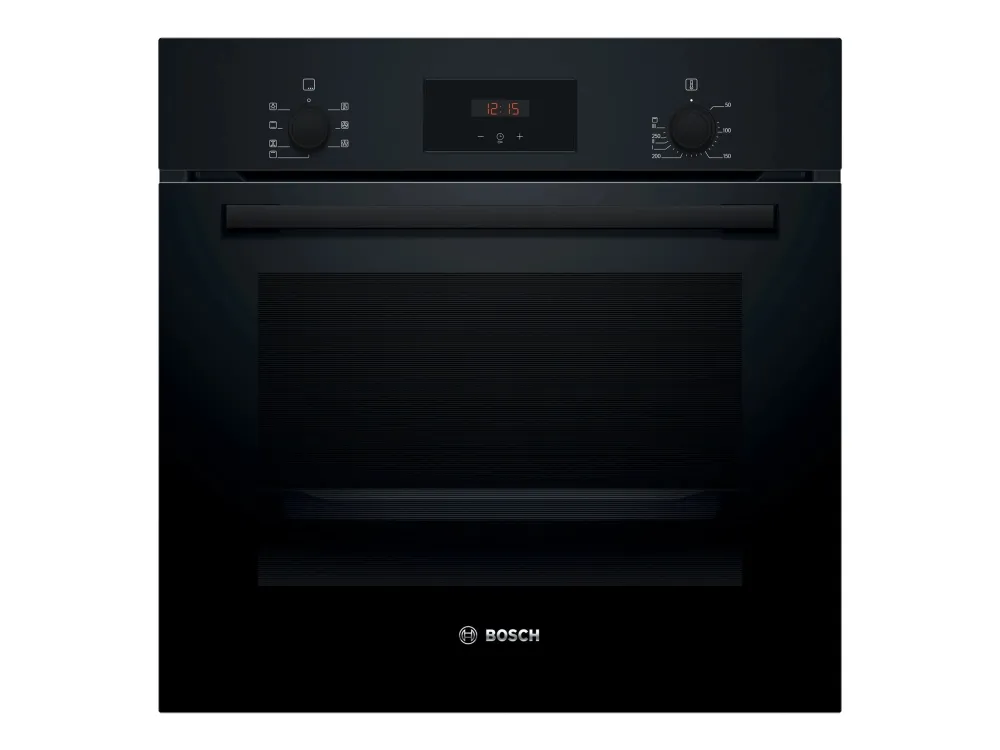 The Bosch Serie | 2 HBF133BA1 electric oven offers efficient cooking with a spacious 66-liter capacity, making it suitable for family meals or entertaining guests. With five cooking modes, including 3D hot air and hot air grilling, it provides versatility in meal preparation while ensuring even heating throughout the oven. The EcoClean Direct technology simplifies cleaning, making maintenance easier.