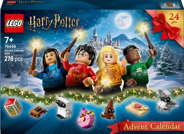 Med lekebyggesettet LEGO® Harry Potter™ Julekalender 2025 (76456) får barn gøyale trollmannsseventyr hver dag fram til julaften. Denne magiske Harry Potter-julegaven for jenter, gutter og fans fra sju år er stappfull av byggbare overraskelser som barn kan bruke i gøyale juleeventyr i trollmannsverdenen. Julekalenderen inneholder LEGO figurer av magiske skapninger, inkludert Bukknebb, Argarapp og en skytsverge-kronhjort. Den inneholder også åtte LEGO minifigurer av populære karakterer, inkludert Harry Potter, Cho Chang™, Draco Malfang og Lulla Lunekjær, som har på seg Galtvort-julegensere og holder en tryllestav. Barn får utallige lekemuligheter med byggbare minimodeller av ikoniske gjenstander som et inntaksbrev fra Galtvort, en eske med Bertram Butts Allsmakbønner, Valghatten, forskjellige magiske eliksirer og Monsterboken om monstre. Settet inneholder 278 deler.