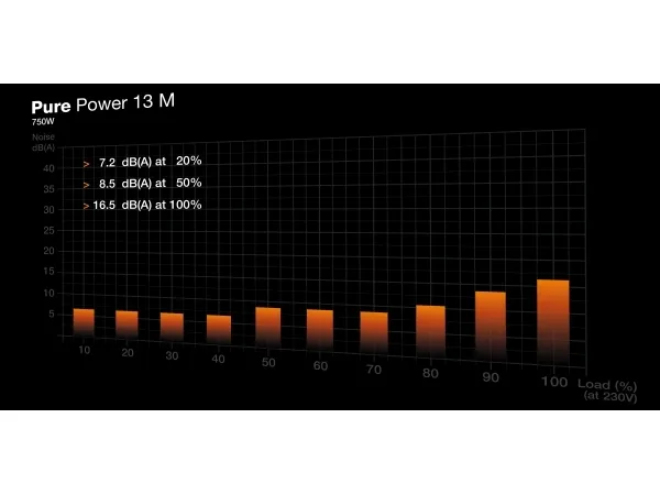 The be quiet! Pure Power 13 M is designed to provide reliable performance and essential protection features for any PC or server setup. With a power output of 750 watts, this power supply ensures efficient energy use while maintaining 80 PLUS Gold certification for efficiency at 94.3%. Its fully modular design allows for efficient cable management, minimizing clutter and maximizing airflow in your system. Equipped with a variety of modular cables, including 8-pin PCI Express, 24-pin ATX, and more, the be quiet! Pure Power 13 M accommodates various needs, ensuring compatibility with a range of components. The fan features rifle bearing technology for quiet operation with a sound emission as low as 16.5 dBA, making it ideal for builds where noise levels matter. With protections against overheating, overcurrent, overvoltage, and short circuits, users can trust this power supply to deliver stable, continuous power for all system demands.