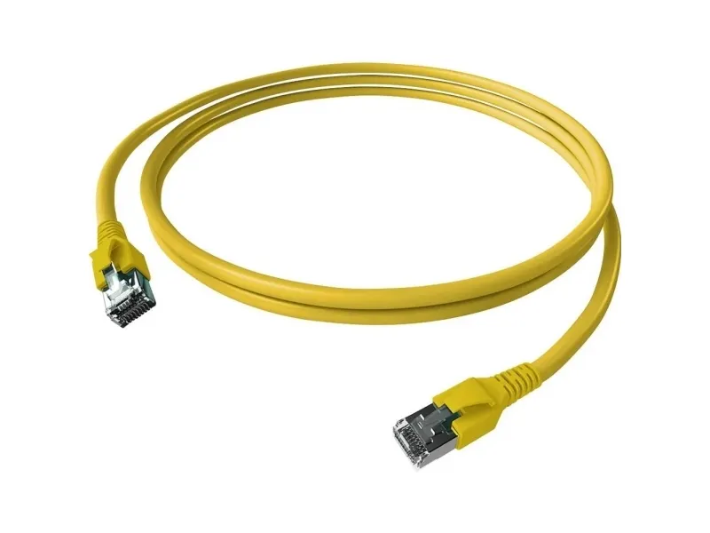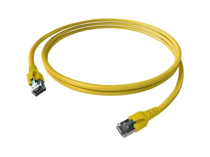 EasyLan FlexBoot patchkabel Kat., S/FTP, gul, 3 m. Forbindelseskabel RJ45/RJ45 skærmet-1:1 belægning med vinkelindstillelige stik-1:1 belægning med vinkelindstillelige stik til anvendelse i kontorer og datacentre egnet til 360° skærmede RJ45-stik
