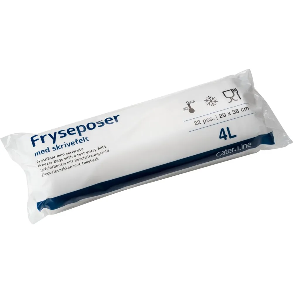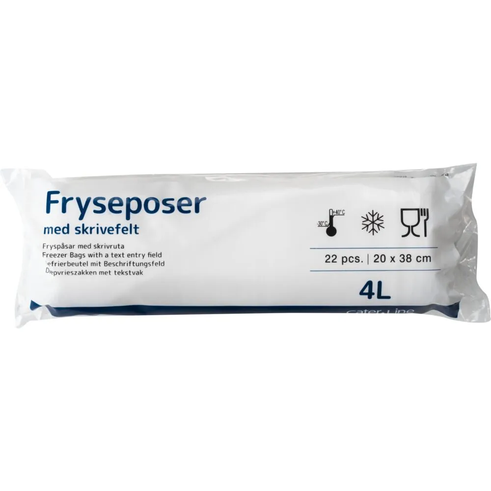 Poserne har et praktisk skrivefelt og er egnet til opbevaring af fødevarer i fryser og køleskab.