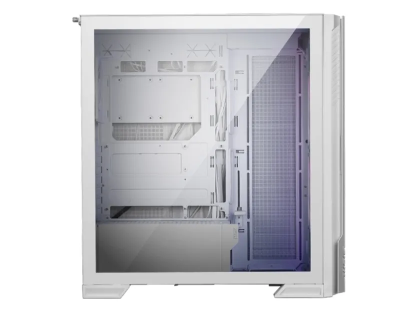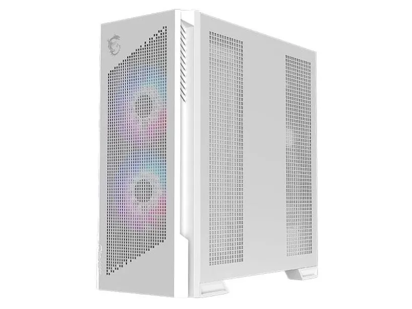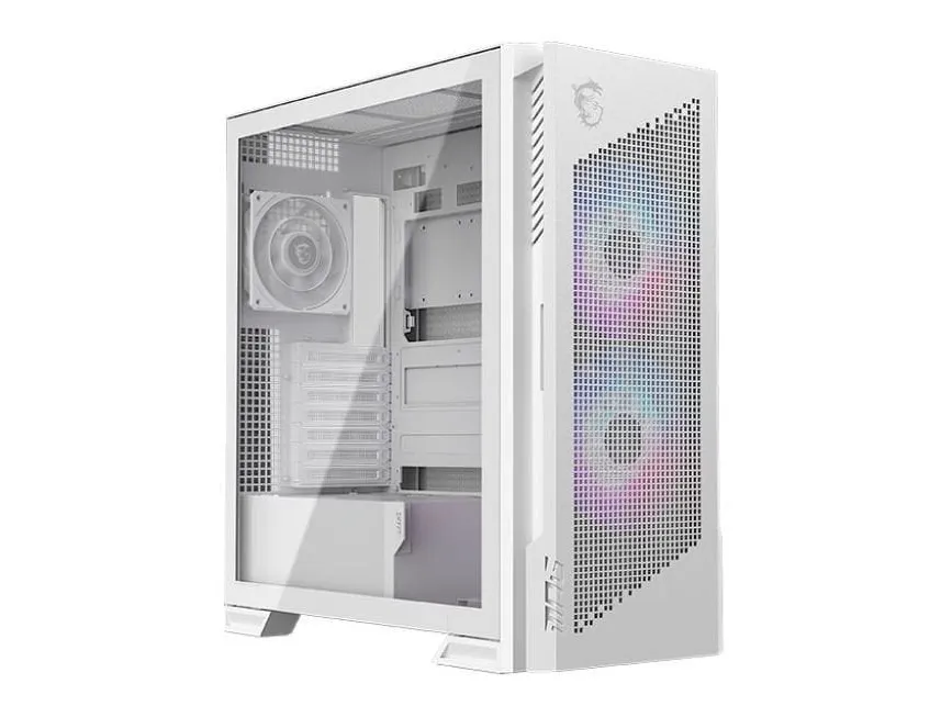 The MSI MPG VELOX 300R AIRFLOW PZ combines practicality with style, ensuring efficient airflow and cooling capabilities. Its mid-tower form factor makes it suitable for various setups. The chassis features a windowed side panel made from tempered glass, allowing for a peek into the internal components while showcasing the built-in ARGB fan hub that enhances visual appeal. Multiple dust filters located at the front, bottom, and top help maintain a clean interior, ensuring longevity for components.