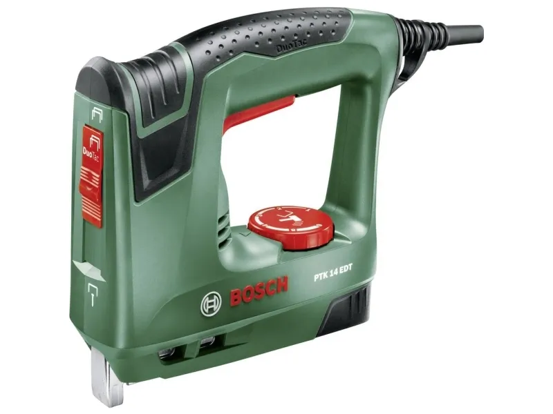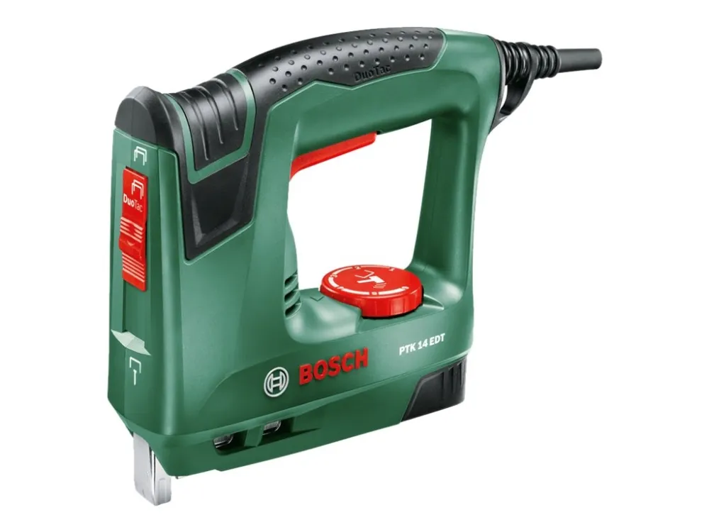 This versatile tacker offers comfort and exceptional adaptability to make fixing incredibly simple. Changing between double and single staples is simple with the DuoTac switch to meet the individual demands of each project. Electronic Impact Force Selection provides the perfect amount of power depending on the material. The Push + Release System increases both safety and control by eliminating self-triggering. The PTK 14 EDT is ideal for fixing soft, thin materials onto wood. Running out of staples or nails unexpectedly is no longer a nuisance, thanks to the staple magazine with reload indicator.