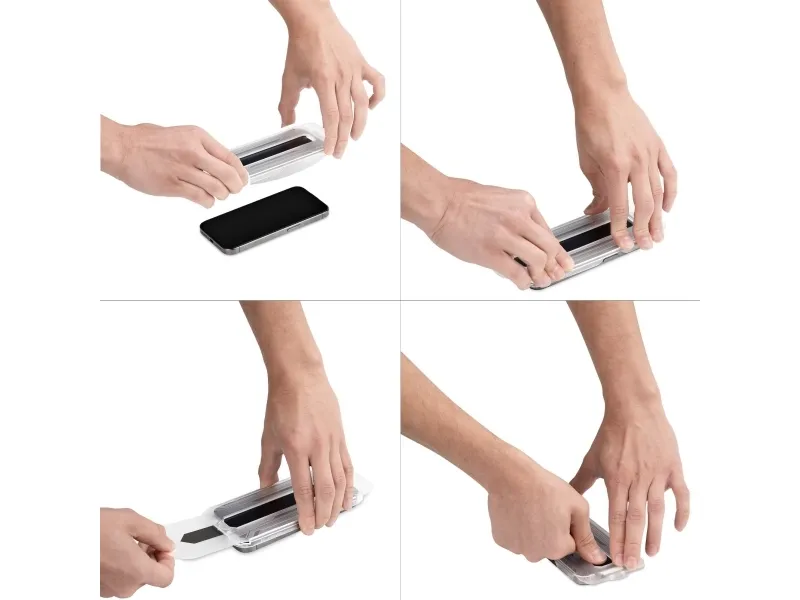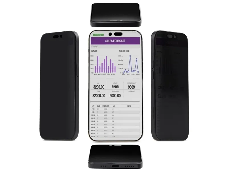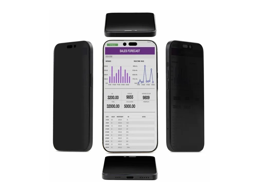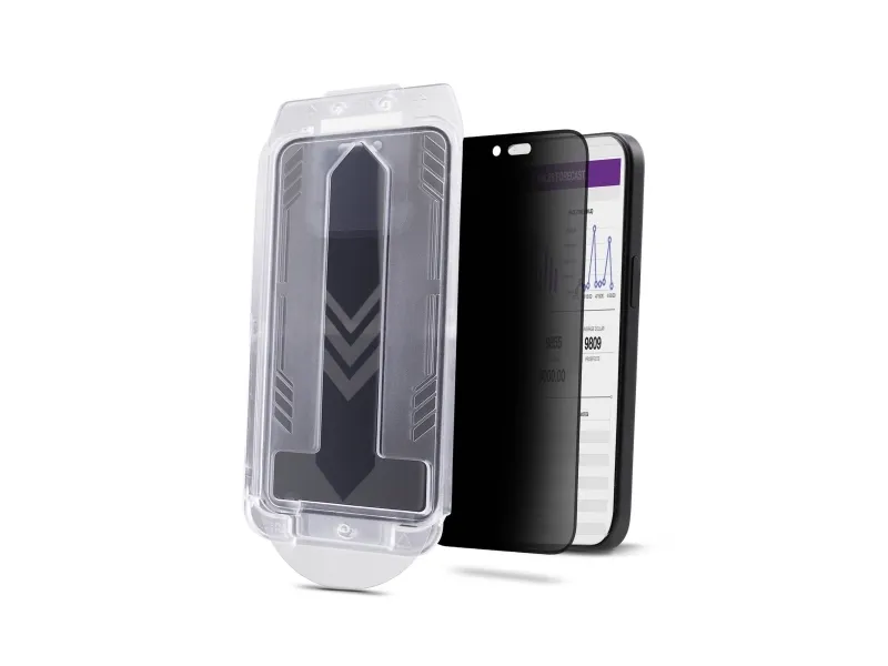 The StarTech.com privacy screen protector for cellular phones offers protection against prying eyes with its 4-way privacy filter. This design allows users to maintain privacy in both portrait and landscape orientations, ensuring a secure viewing experience no matter the situation. Made from durable tempered glass, it also reduces blue light exposure, contributing to eye comfort during prolonged use. The product comes with a cleaning kit, a squeegee, and an applicator frame, making installation straightforward and efficient for users.