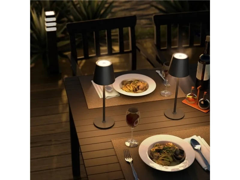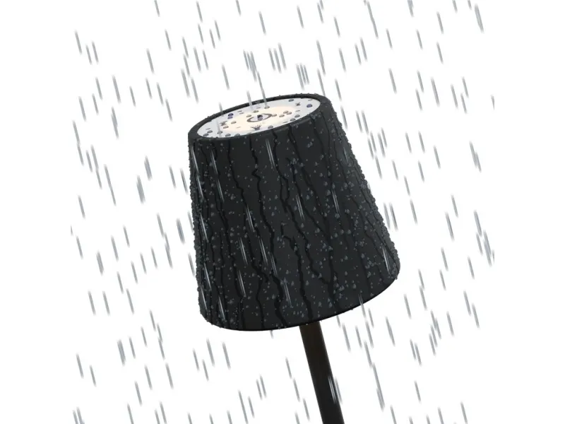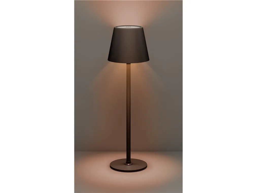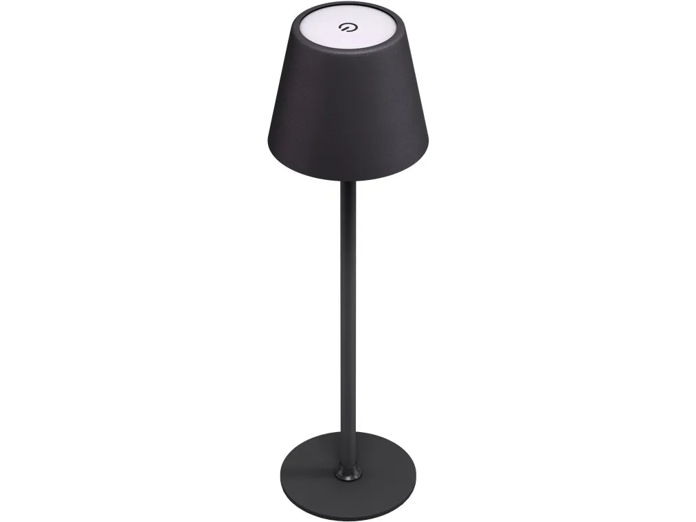 med touch-styring, 170 lm, varm hvid (3000 K), trinløs dæmpbar Lyset imponerer med sin sofistikerede touch-betjening og integrerede genopladelige batteri, der gør det trådløst og fleksibelt at bruge overalt Med sit moderne design passer lampen ind i ethvert interiør: Som stue- eller sengelampe, som blikfang på kontoret eller som bordlampe i restaurationsbranchen Et let tryk på toppen tænder/slukker LED-lampen, et langt tryk muliggør trinløs dæmpning (30–170 lm) Litiumbatteriet 18650 af høj kvalitet sikrer ensærlig lang levetid og en fremragende driftstid på op til 6 timer/100 % lysstyrke og op til 20 timer/dæmpet til 10 % Takket være stænkvandsbeskyttelsen (IP44-beskyttelsesklasse) er bordlampen også perfekt til terrassen, altanen eller haven Lampeskærmen og basen er lavet af robust metal - for en stabil stand uden at vælte og en lang levetid Inkl. USB-ladekabel (1 m, USB-C™ til USB-A) til nem opladning via USB-oplader, laptop eller powerbank