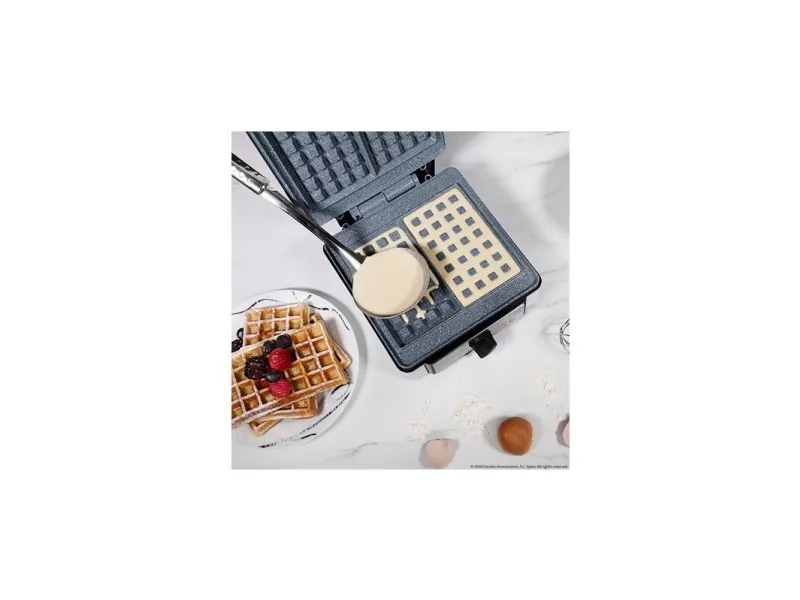 Cecotec Fun Gofrestone Double 2-waffle waffle maker features 1200W and RockStone coating.