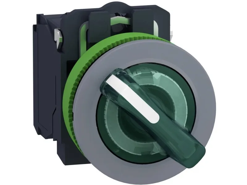 Lyskontakt, Harmony XB5F, plast, 30 mm, komplet enhed, kundespecifik via konfigurator Serien Harmony XB5F af plast giver en lang række 30 mm komplette enheder som f. eks. trykknap, lysindikatorer og valgkontakt til nødstop-afbryder. Derudover er det i kraft af den modulære opbygning af enheden muligt også at medtage alle komponenter som enkeltelementer samt valgfrit også til 2mm indbygningsmål. På grund af kvaliteten, fleksibiliteten og den ekstreme robusthed (beskyttelsesklasser op til IP69K) egner apparaterne sig ideal til de fleste anvendelser i industrien og i bygninger. Denne lysvælgerkontakt justeres individuelt af kunden med Harmony online-konfigurator. Monteret i et 30 mm hul tilsluttes apparatet med skrueklemmer på bagsiden af produktet. På grund af de mange eksisterende produktstandarder og certificeringer er de egnet til international anvendelse. Takket være det grønne premium-miljømærke kan du få detaljerede oplysninger om materialeindhold, miljøvirkninger og cirkulær økonomi, som understøtter dine mål for bæredygtig udvikling.