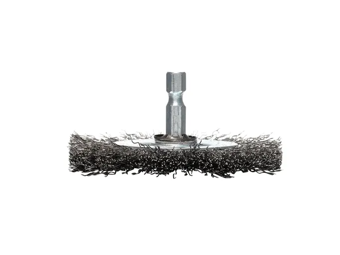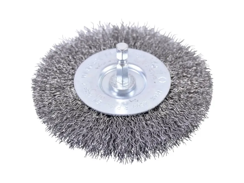 Makita rundbørste 100 mm stål P-66880 Rundbørste dia. 100 mm med bølget 0,3 mm stålbørste i forzinket stål. Egnet til en blødere slibeydelse og middelstærk børstevirkning på flade og ujævne flader. Med 1/4-sekskant-optagelse.