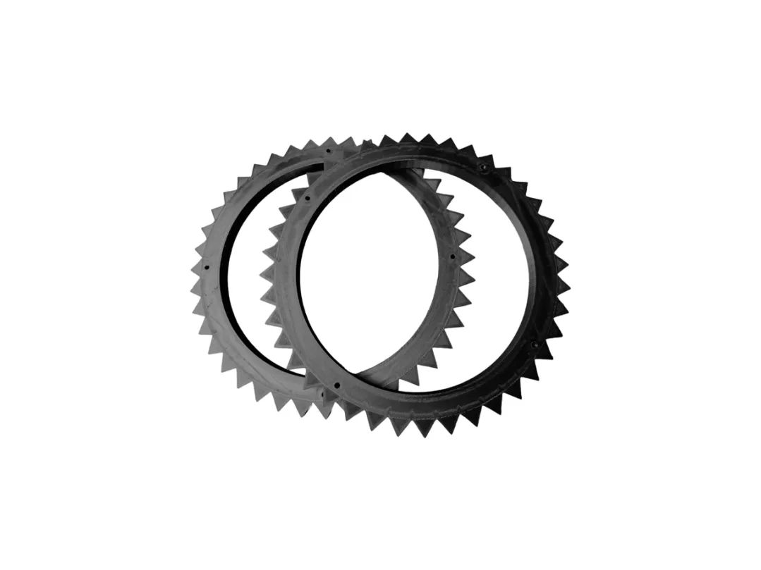 Enhance the performance of your Segway Navimo robotic lawnmower with our specially designed spikes/terrain wheels. These wheels are 3D-printed in durable ASA plastic, ideal for outdoor use and UV-resistant, ensuring longevity and reliability. Features: Material: Made from durable ASA plastic, UV-resistant, and suitable for outdoor use. Design: The set includes two spikes, one for each wheel. They mount on the outside of the wheels to ensure better traction and higher torque when the robot is operating. Width: With a width of 12 mm, they provide solid contact with the ground, significantly improving grip. Installation: Easy and quick installation. The spikes are aligned and screwed onto the existing wheel with the included countersunk screws. Functionality: Thanks to the improved grip, the robotic lawnmower can operate effectively in challenging terrain and wet weather. Additionally, the spikes aerate the lawn as they penetrate the ground, benefiting grass health. Benefits: Improved Traction: Ensures better hold on the ground, providing higher torque and stability. Increased Performance: The robot can perform its tasks even in difficult terrain and wet conditions. Lawn Aeration: As the spikes penetrate the ground, they help aerate the lawn, improving grass growth conditions. Assembly Instructions: Place the spikes on the wheel. Align them correctly. Screw them in with the included screws. Done! The package includes both screws and a manual that guides you step-by-step through the installation process.