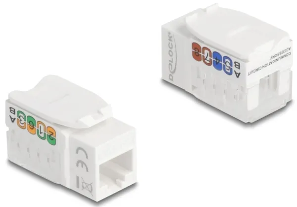 The Delock 90720 modular insert is designed for efficient networking, utilizing unshielded twisted pair (UTP) technology. With two ports and compatibility with both solid and stranded 22 - 24 AWG wires, this keystone module simplifies connections for seamless integration into your existing infrastructure. The package includes a cable clip for quick installation, while the RJ-45 and LSA wall outlet connectors ensure versatility. Packaged in a zip poly bag, the Delock 90720 is a reliable choice for effective cabling solutions.
