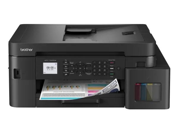 The Brother MFC-T930DW offers versatile functionality, combining printing, copying, scanning, and faxing in one compact device. Ideal for both home and office use, this all-in-one printer features a print speed of 30 pages per minute in black and 26 pages per minute in color. With automatic duplexing, it allows for easy double-sided printing, helping to save time and resources. The convenient ink tank system ensures cost-effective printing with the ability to refill ink, extending the longevity of the device. Connectivity options include USB 2.0, LAN, and Wi-Fi, enabling mobile printing capabilities through services like Apple AirPrint and Mopria Print Service. Built-in security protocols ensure safe wireless connections. With features such as a 20-sheet automatic document feeder and high-resolution copying of 1200 x 2400 DPI, the MFC-T930DW simplifies multitasking and enhances productivity. Its user-friendly display makes operation easy, making it a reliable choice for various tasks.