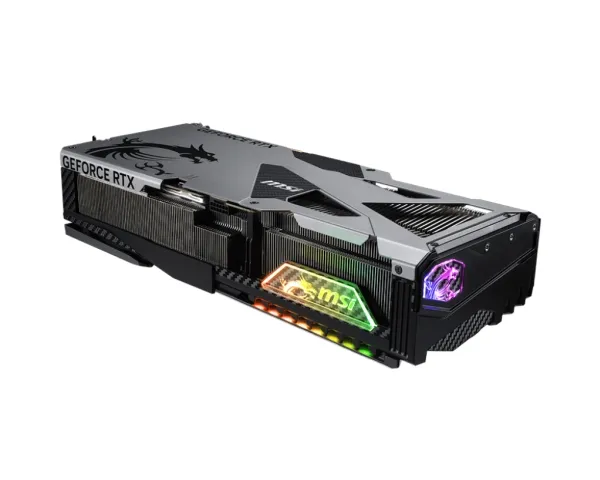 The MSI VANGUARD SOC graphics card is intended for gamers seeking an immersive visual experience. With a robust NVIDIA GeForce RTX 5070 graphics processor, this card supports a maximum external resolution of 7680 x 4320, ensuring clarity and vibrant colors for gaming and design applications. Its 12 GB of GDDR7 SDRAM memory and 192-bit bus width provide necessary bandwidth for high-performance gaming, with a memory speed of 28 Gbps enhancing data transfer rates for smooth gameplay. The GPU is equipped with features like NVIDIA DLSS 4, Ray Tracing Cores, and NVIDIA Reflex 2, which improve gaming performance and responsiveness. Featured in the card are a triple fan design and vapor chamber cooling technology that help maintain optimal temperatures during intense gaming sessions.