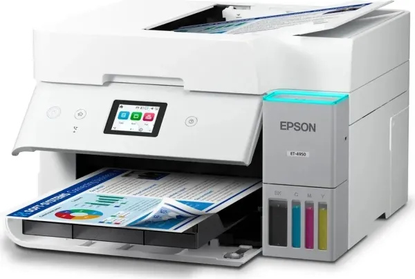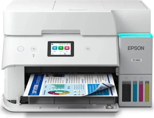 Epson EcoTank ET-4956 tilbyr en allsidig løsning for utskrift, kopiering, skanning og faksing. Med en kapasitet på opptil 35 sider per minutt i svart-hvitt og 23 sider per minutt i farger, sikrer denne alt-i-ett-skriveren effektivitet både hjemme og på kontoret. Enheten har en robust automatisk dupleksfunksjon som muliggjør sømløs tosidig utskrift, minimerer papirforbruket og reduserer kostnadene.