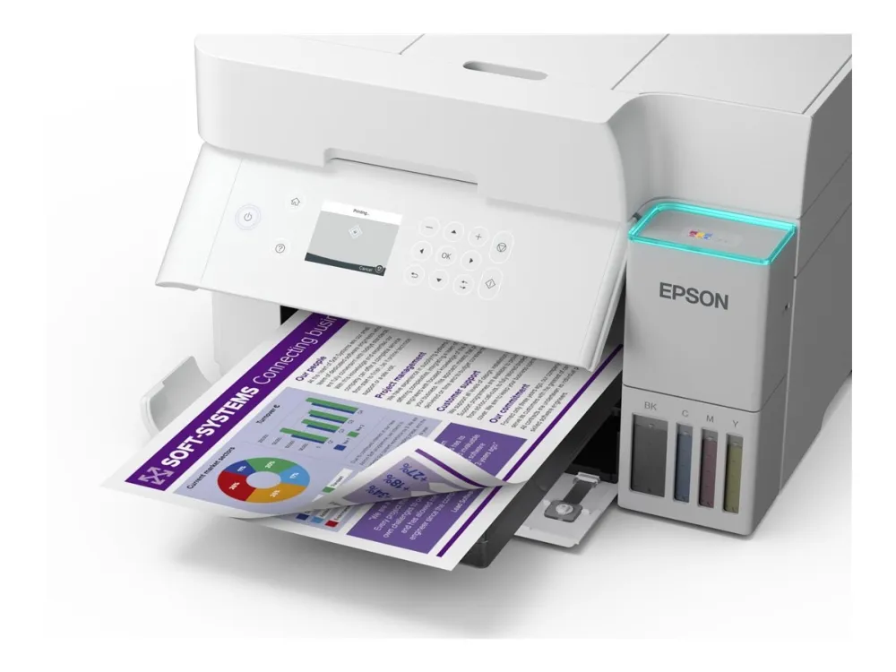 ET-3956 er utstyrt med et brukervennlig LCD-display som gjør navigering enkelt og effektivt. De trådløse tilkoblingsmulighetene gjør det mulig å skrive ut mobilt med Apple AirPrint, Mopria Print Service og Epson Connect, slik at brukerne kan skrive ut fra smarttelefoner eller nettbrett. I tillegg er denne skriveren designet for vedvarende ytelse med en kapasitet på 15 100 sider, noe som gjør den ideell for små team eller hjemmekontorer som krever pålitelig dokumenthåndtering.