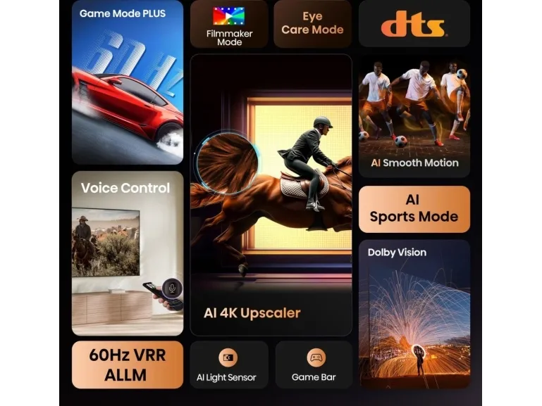 The Hisense 50A6Q is designed for those who seek a vibrant viewing experience and quality audio. This 50-inch LED-backlit LCD TV provides 4K UHD resolution, delivering clear images with rich detail and vibrant colors. Equipped with a frameless design and various picture enhancements such as Precision Color and 4K AI Upscaling, it transforms any room into an entertainment hub. This smart TV integrates with popular streaming services like Netflix, YouTube, and Prime Video, allowing for easy access to a wide array of content.