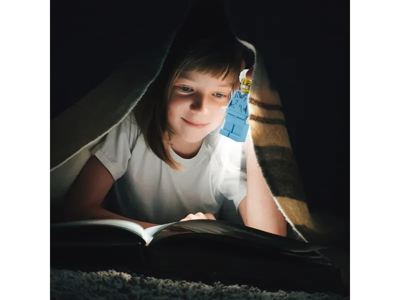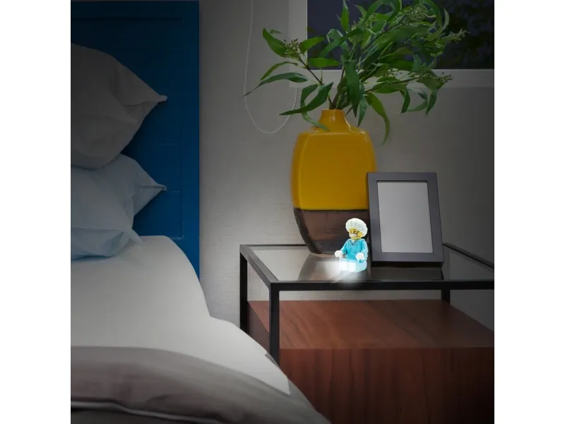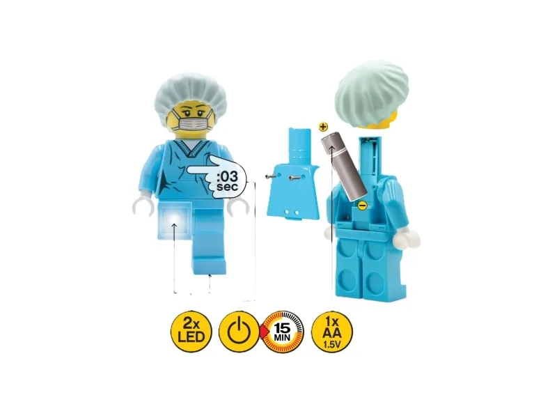 Smart LEGO Iconic Kirug LED Lommelyge 300 % (I forhold tilLEGO Minifigur) med 2 klare LED lys i lommelygtens fødder. Kan både stå og tages med i lommen.