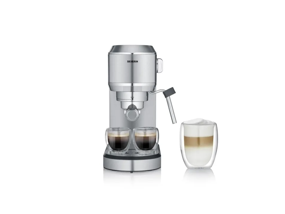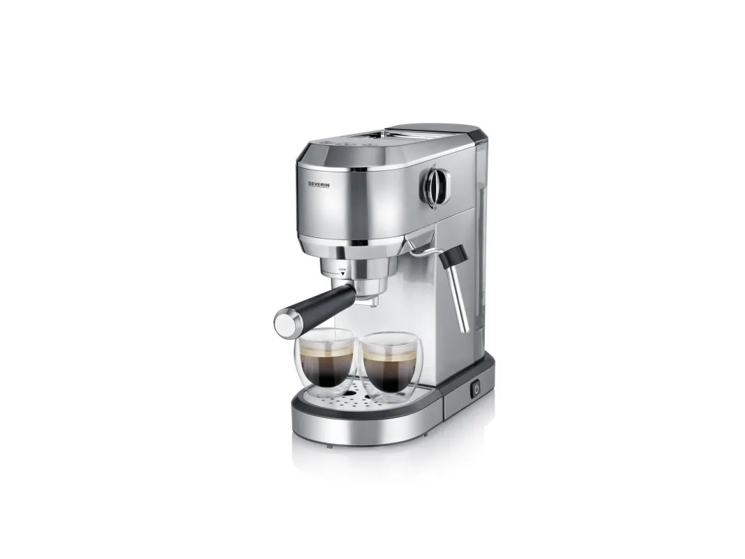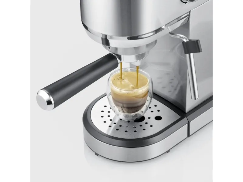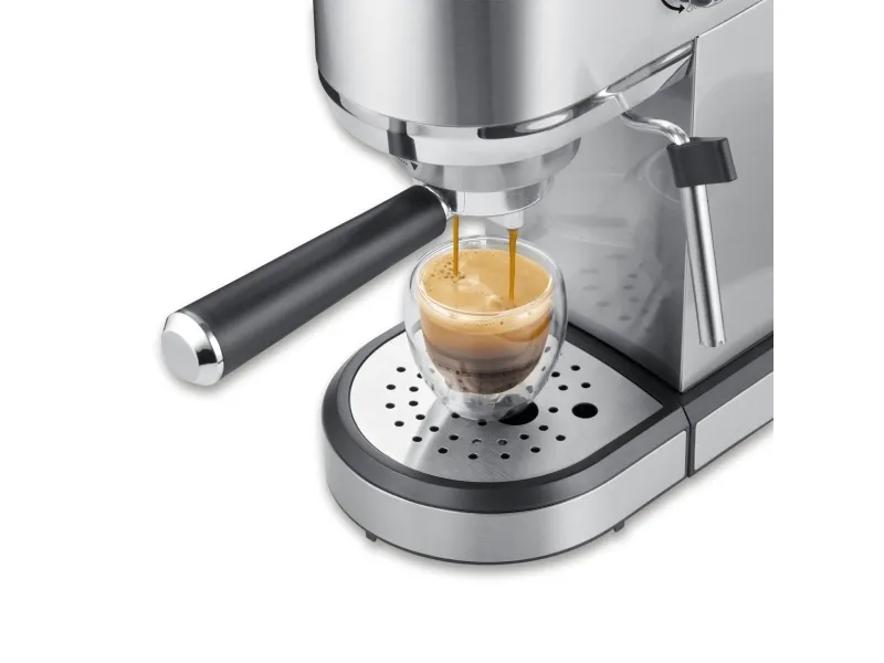 Den här manuella espressomaskinen har en stilren design i rostfritt stål. Maskinen använder ett termoblocksystem för snabb uppvärmning och konstant temperatur. Med denna maskin kan du enkelt bli din egen barista. Ångmunstycket gör det lätt att skumma mjölk och maskinen har en kraftfull Italiensk ULKA-pump med ett tryck på 20 bar, vilket ger en rik smak och en bra crema. Det finns två munstycken inkluderade - en för en kopp, en för två koppar.