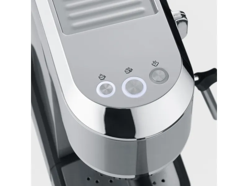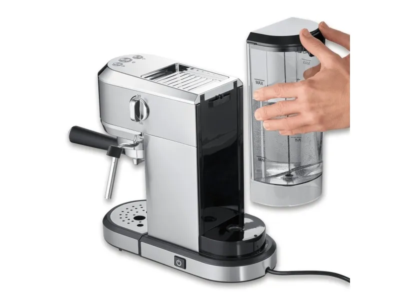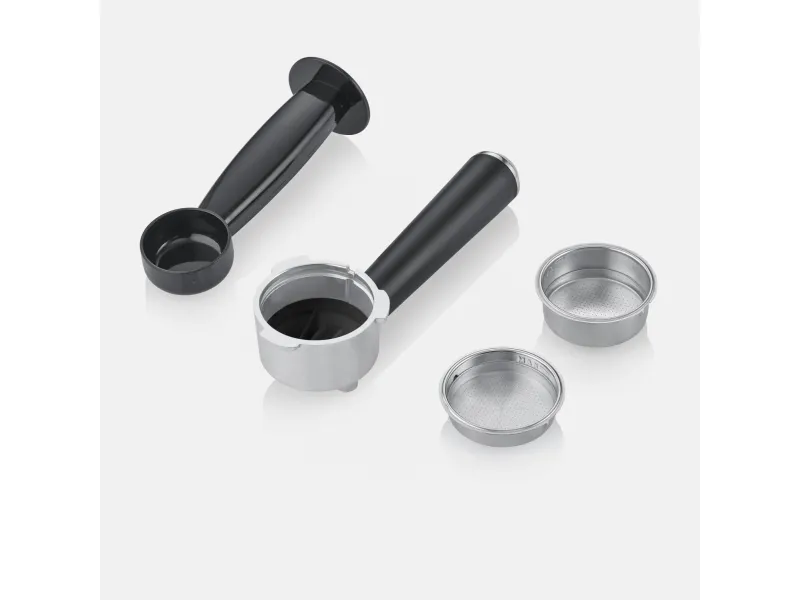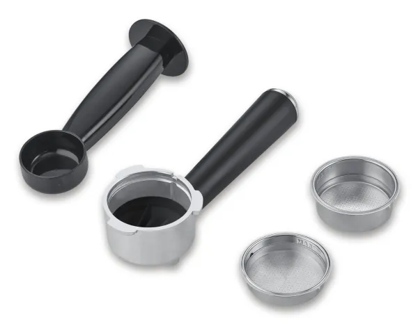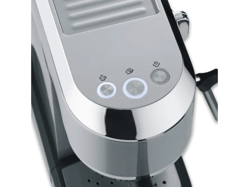 Effekt: 13500W Termoblocksystem Jobbar med upp till 20 bars tryck Rostfria silar för 1 eller 2 koppar Löstagbar vattentank på 1 liter Svängbart ångmunstycke för uppvärmning och skumning av mjölk Löstagbar spillbricka i rostfrittstål för enkel rengöring Koppvärmare Automatisk avstängning Inklusive kaffemått