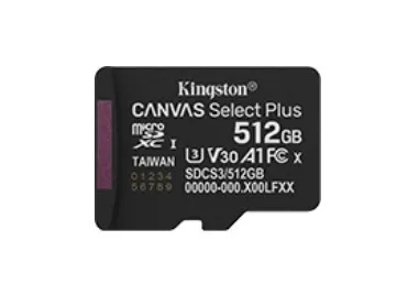 The Kingston Canvas Select Plus microSDXC UHS-I memory card is designed for performance and reliability in various environments. With a generous storage capacity of 512 GB, it supports a wide range of applications, from capturing high-resolution photos to recording high-definition videos. This memory card is built to withstand extreme conditions, offering IPX7 protection, which ensures it remains waterproof when submerged. Its read speeds of up to 150 MB/s enhance file transfer efficiency, making it a choice for anyone needing quick access to data.
