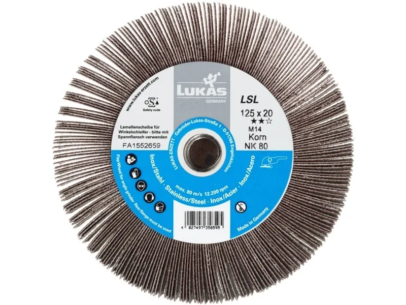 Lamelslibeskive LSL universal 125x20 mm med indvendigt gevind M14 - korund korn 60 Hurtig og nem satinering med vinkelsliberen testet kvalitet: Høj sikkerhed ved regelmæssige tests God levetid på diverse materialer, i grov- og finslibning Hurtig og nem montering uden spændenøgle takket være integreret M14-gevind Hurtig og nem montering uden spændenøgle Fremragende pris-/ydelsesforhold takket være normalkorund Denne lamelskive af sliliner består af enkelte lameller, som er indlejret radialt til aksen i en massiv plastkerne og er i håndindsatsen særligt velegnet til rustfjernelse, fjernelse af lak og startmaling, efterarbejde af svejsesømme og slibearbejde i beholder- og gelændringsbygning og i montagevirksomheder. Det normalkorund, der anvendes på denne lamelskive, imponerer med gode standtider på mange materialer, ved satinering og finslibning. Den gør det muligt for dig at arbejde omkostningseffektivt. Takket være integreret M14-gevind kræves der intet ekstra værktøj ved hurtig og nem montering af lamelskiven. Regelmæssige tests garanterer en høj sikkerhed ved brug af dette værktøj.