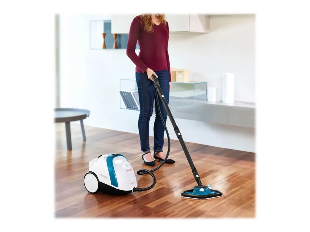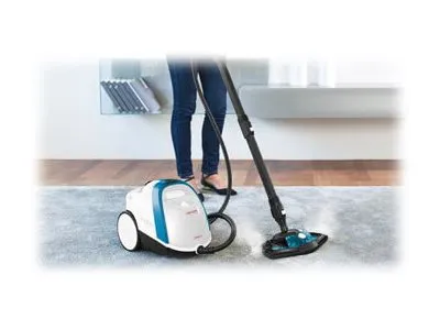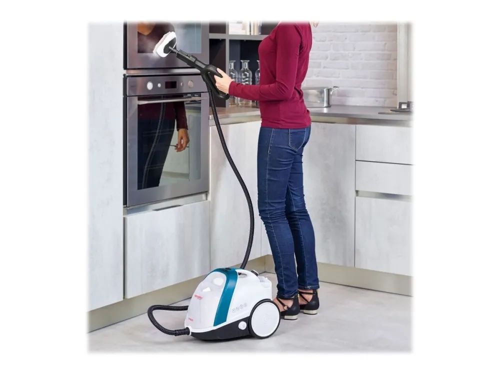 The Polti Vaporetto Smart 100_B is a steam cleaner designed to provide an effective cleaning experience for various surfaces. This canister cleaner utilizes steam cleaning technology, producing a steam output of 110 g/min and reaching a pressure of 4 bar for optimal dirt removal. With a heating time of 2 minutes, it is ready to tackle cleaning tasks quickly, allowing users to maintain a clean environment without delay. An operating radius of 7.5 m adds convenience, making it easy to move around different areas without constantly changing outlets.