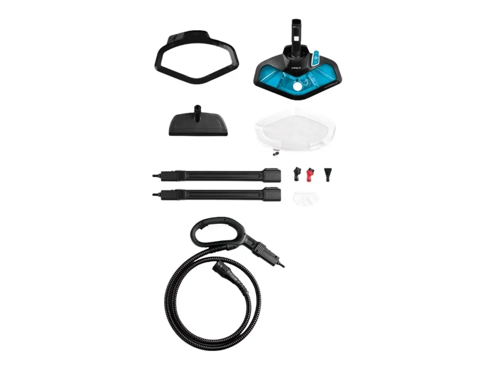 Constructed with a stainless steel tank, the Polti Vaporetto ensures longevity and reliability in use. Safety features such as a child lock enhance usability, providing peace of mind for families. The comprehensive set of included accessories, such as the Vaporforce brush, extension tube, and various cleaning tools, empowers users with versatile options for effective cleaning across multiple surfaces, making it a valuable addition to any household.