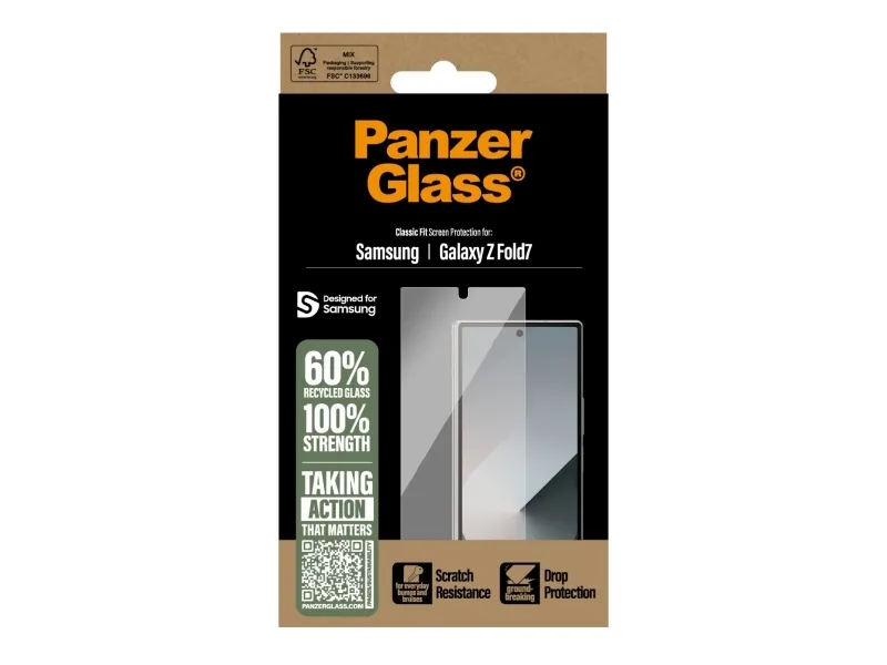 PanzerGlass ® Skjermbeskytter Samsung Galaxy Z Fold7 | Classic Fit, Samsung, Samsung - Galaxy Z Fold7, Tørr påføring, Ripebestandig, Støtbestandig, Transparent, 1 stk
