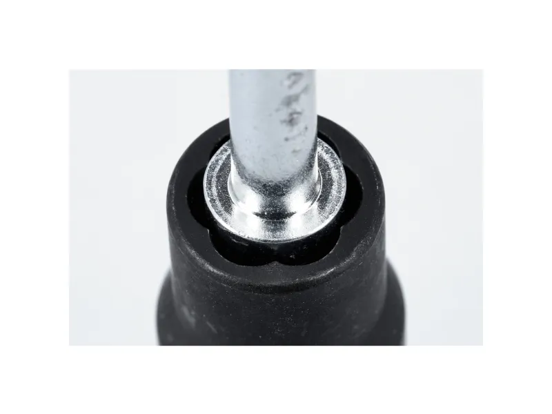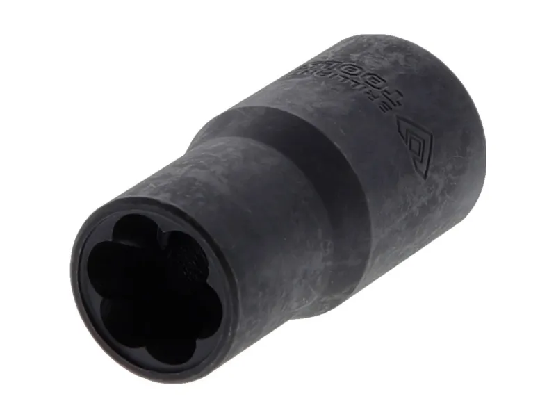 1/2 spiralprofiltopnøgle 13 mm • Fremstillet iht. din 3120 • 1/2« indvendig firkantaksel (12,5 mm) • Til at løsne og dreje defekte møtrikker- og skruehoveder ud. • Venstredrejende spiralprofil med 6 konisk tilløbende skær • Til manuel betjening • Af kvalitativt krom-molybdæn-stål for særligt lang levetid • fosfateret • Nøglevidde 13 mm